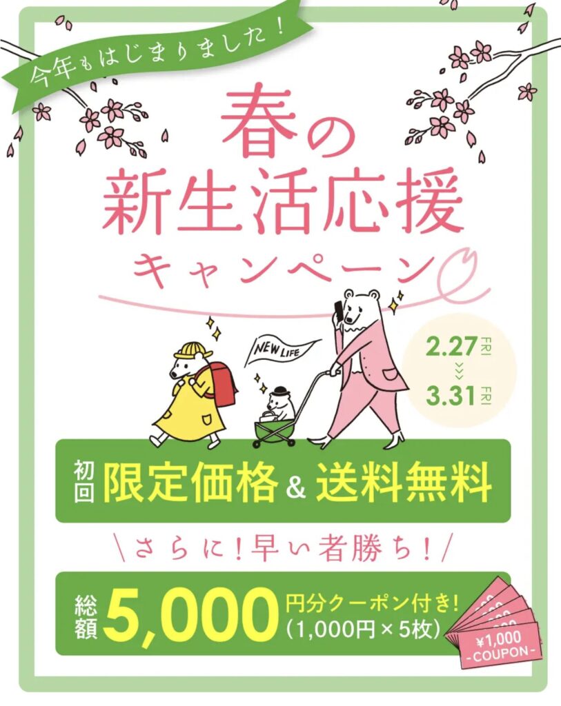 ・総額5000円分クーポン(春の新生活応援キャンペーン限定)