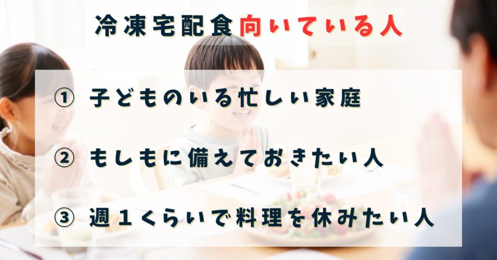 冷凍配達の宅配食が向いている人は以下のとおり。