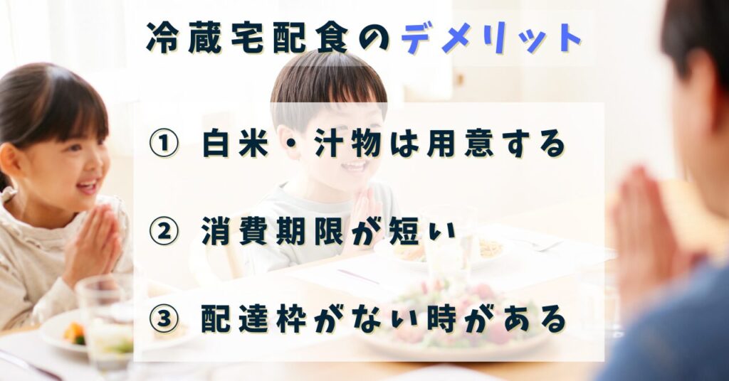 とはいえ冷蔵配達の宅配食にはデメリットも存在するので、、